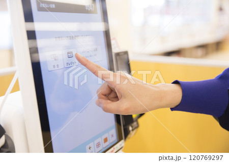 セルフレジで精算をする女性手元