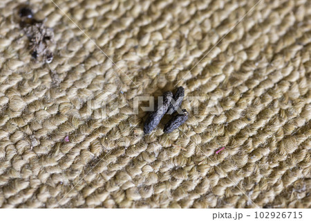 カーペットの上に撒き散らされていたネズミの糞 ネズミ被害警告イメージ