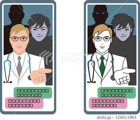 スマホのSNSで医者に、なりすますロマンス詐欺犯罪組織のイメージ。