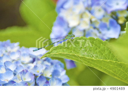 紫陽花の葉に止まるイトトンボ イトトンボ
