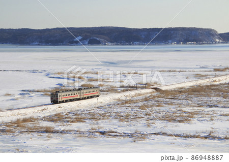 冬の別寒辺牛湿原を行く花咲線キハ54