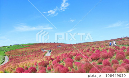 赤く色づくコキアの丘 ひたち海浜公園