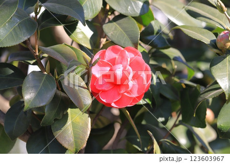 椿・ヒオトメ(紅乙女)の蕾と葉3