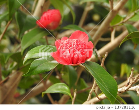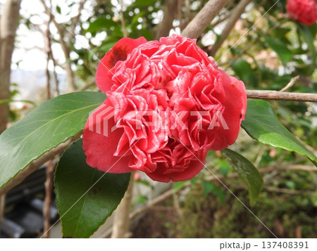 赤い椿「紅唐子」の花(愛知県豊田市)