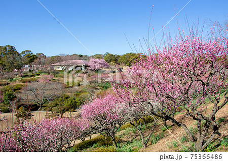 鹿児島県の吉野公園の梅 満開の梅園