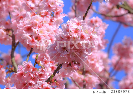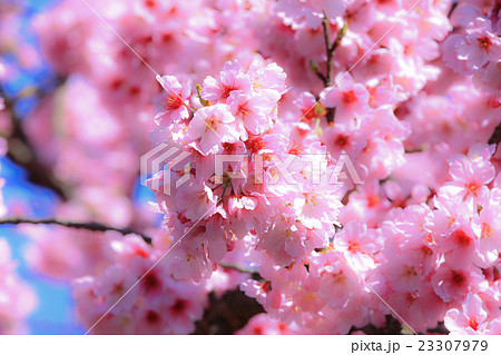 濃いピンク色の陽光桜の花(春、三月)