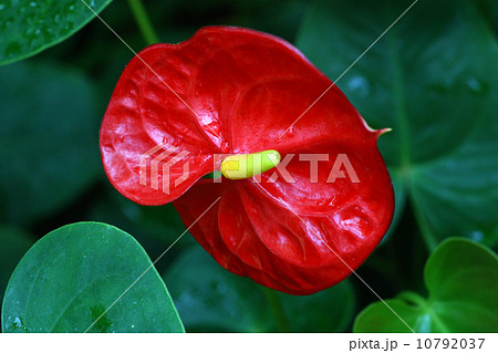 熱帯の植物アンスリウムの写真 大紅団扇 仏炎苞