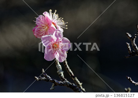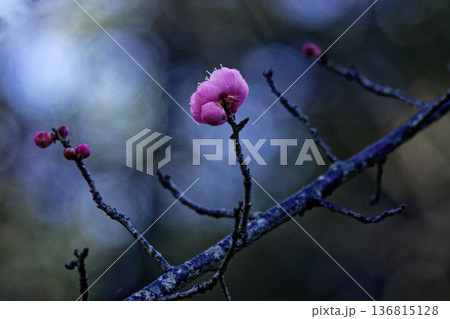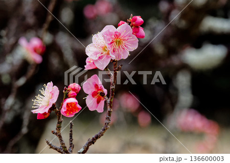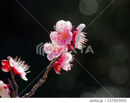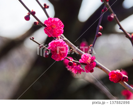 春を告げる紅梅の花 園芸品種森の関