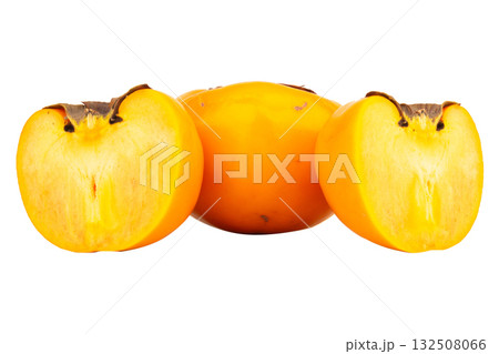 Fresh ripe plum cut in half isolated on white background