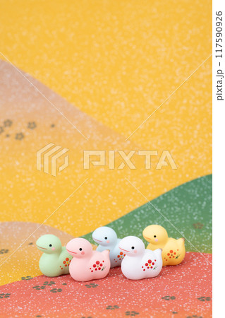 巳年 年賀素材 野山を散歩するカラフルな巳