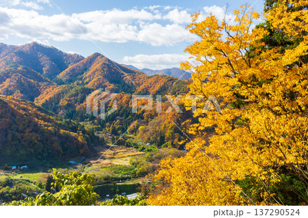 秋の山形県山形市 紅葉の立石寺(山寺) 五大堂からの眺望