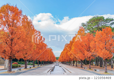 のんほいパーク、紅葉するメタセコイア並木〈愛知県豊橋市〉