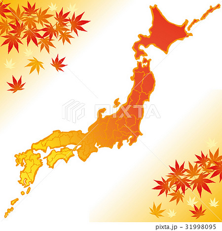 日本地図,秋の国内旅行,紅葉前線のベクターイラスト背景素材