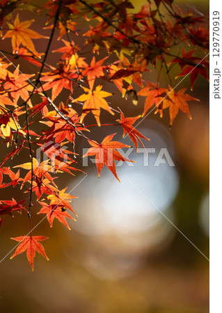 晩秋の秋晴れに映える鮮やかに色づいた紅葉