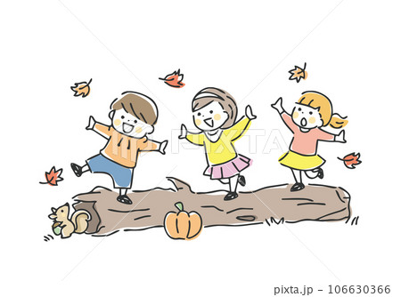 題名(ピクスタ用) 秋の落ち葉を楽しむ家族のイラスト