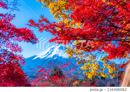 【富士山素材】紅葉時期の新倉山浅間公園【山梨県】