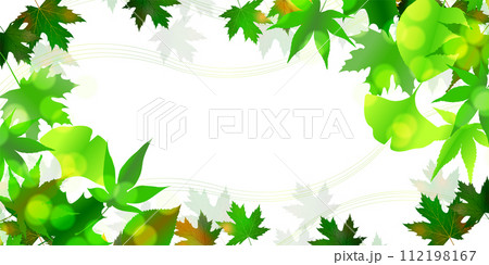 秋のフレームと植物のイラストセット。秋の葉の紅葉、もみじ、イチョウ、落ち葉、かわいい秋素材。