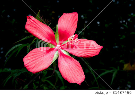 鮮やかな紅い大輪の花が咲くアオイ科の多年草モミジアオイ