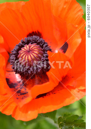 真っ赤な花びらに黒い斑点があるモンツキヒナゲシ(紋付雛芥子)