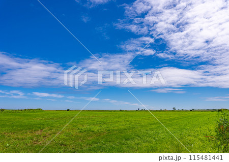 夏の青空と草原