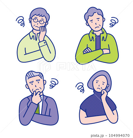 モヤモヤするシニアの男女の上半身イラスト素材【セット】