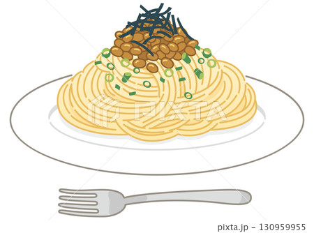 黄身のっけ和風納豆パスタ(フォークですくう)
