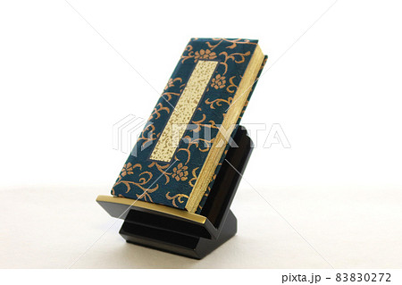 見台の上に立てられた先祖代々の戒名の書かれた過去帳1