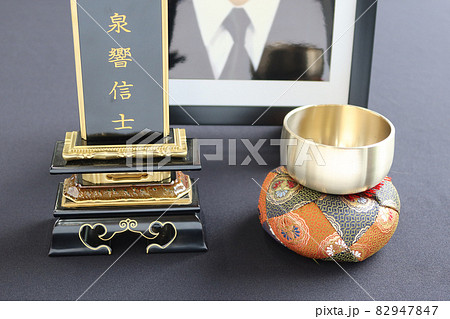 遺影の前におかれた骨壷とお位牌2 終活のイメージ