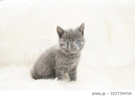 白バックとカメラ目線のシャルトリューの仔猫