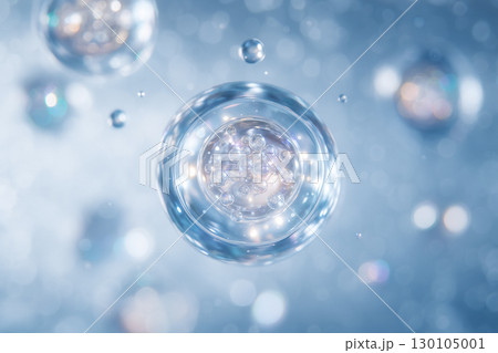 透明な分子バブルが集まる高精細な美容成分イメージ