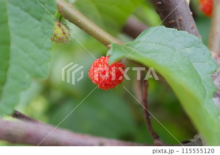 自然 植物 コウゾ、高級和紙の原料。初夏に赤くて艶のある甘い実をつけます