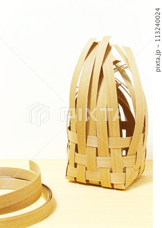 バスケット・籠【編む・組む・作る】(人物なし・ハンドメイド・紙バンド)