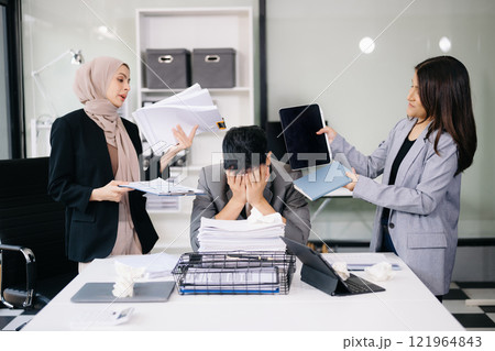 Stressed Asian Businesswoman Surrounded by Overwhelming Paperwork Concept of Workplace Anxiety and Overwork