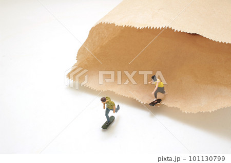 mini figure play the Skateboard out of paper bag