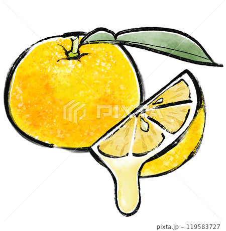 柚子 果汁 墨 イラスト