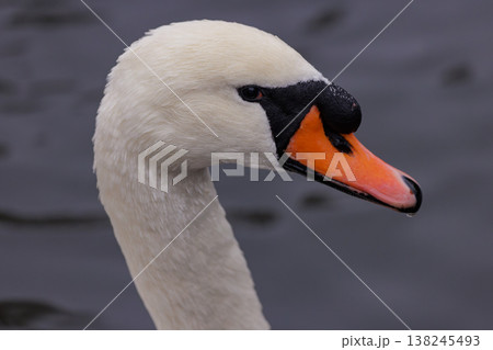 Elegant swan gracefully gliding through tranquil waters in a serene lakeside setting during the golden hour