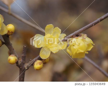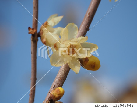 寒さの中咲いた黄色い花一輪 花(1月)ソシンロウバイ42V3.4