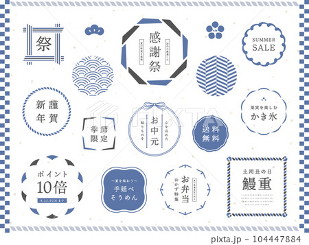 かわいい日本の夏のイラスト円形フレーム(2色)