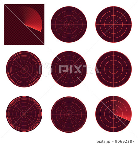危険なレーダー画面のイラスト素材セット_赤_背景あり