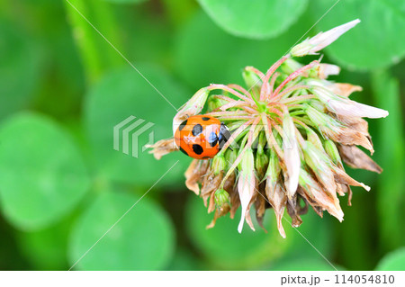 シロツメクサとテントウムシ