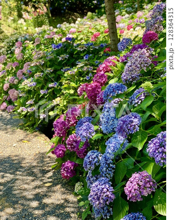 新緑の木陰で咲き競う色とりどりの紫陽花〈可睡ゆりの園/静岡県袋井市〉