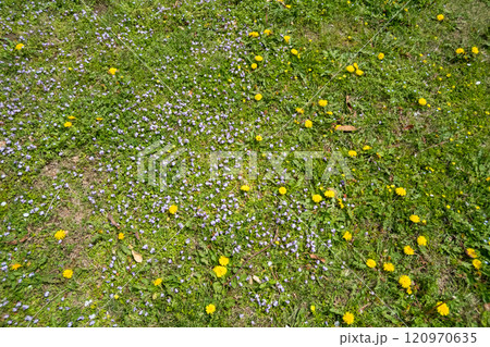 芝生に咲いた満開の「ムラサキサギゴケ」