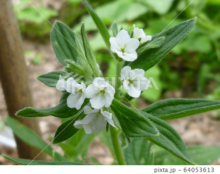 紫根やシコンと呼ばれるニホンムラサキの花。白花です。
