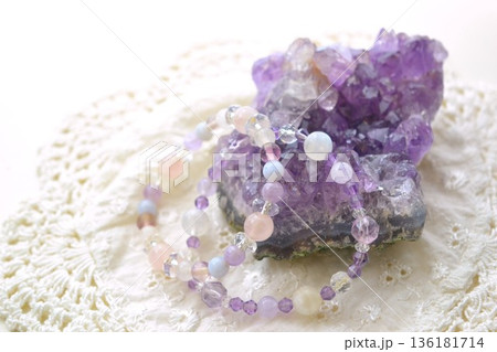 紫水晶クラスターと天然石ブレスレット
