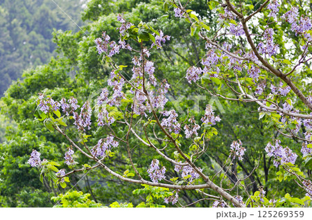 初夏の里山に咲く桐の花