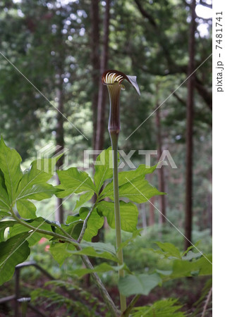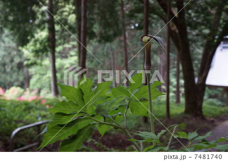 自然 植物 マムシグサ、アオマムシグサ。初夏の林の中で緑色の仏炎苞が鎌首をもたげます