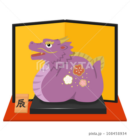 紫の龍の置物と金屏風 年賀状素材2024 辰年