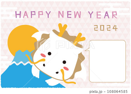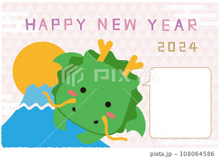 年賀状2024 富士山から竜 ピンク 吹き出し