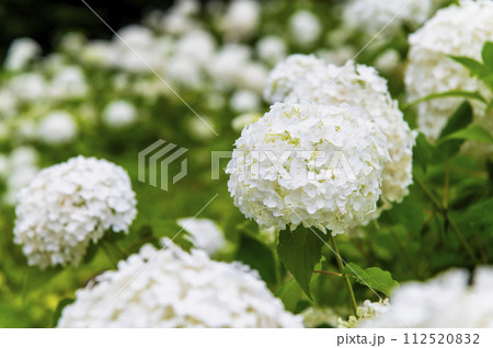 6月の公園に咲く青い紫陽花 梅雨イメージ