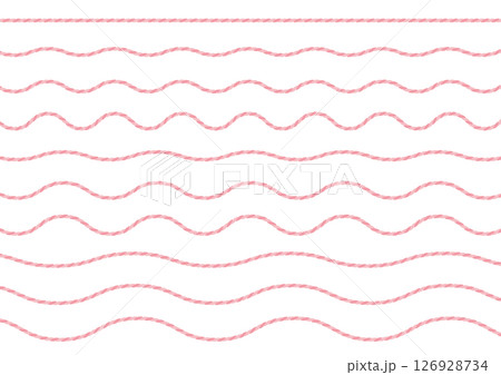 真っ直ぐな紐と波打つ紐のイラストのセット_ピンク